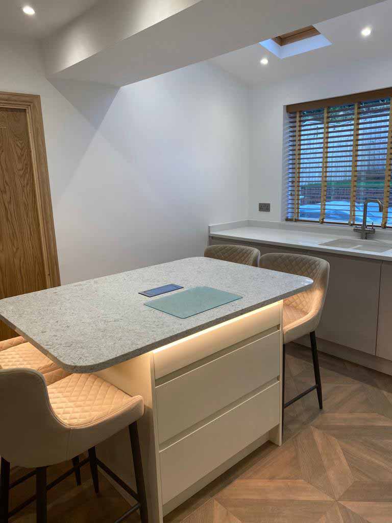 Granite and Quartz worktops add a truly luxurious feel to your kitchen. Our in-house fabrication facility in Blaydon-on-Tyne, Tyne and Wear, offers a large range of natural granite and composite quartz to give you a wide selection to choose from. Utilising state-of-the-art machinery allows us to boast beautifully finished edges, drainage grooves, and cut-outs for any shape of sink or hob.